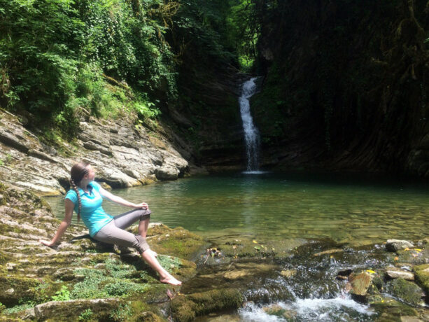 - в Пластунке повернуть у остановки автобуса № 87 налево и продолжить путь к водопадам пешком.