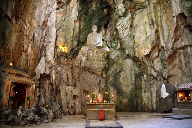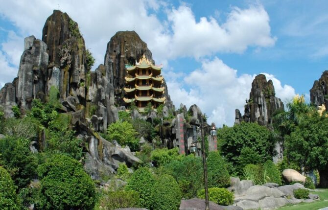 Мраморные горы — одна из самых узнаваемых достопримечательностей в Дананге, от центра курорта к ним можно добраться за 10-15 минут. Это место является знаковым для жителей страны и притягивает огромное количество туристов из близлежащих городов.