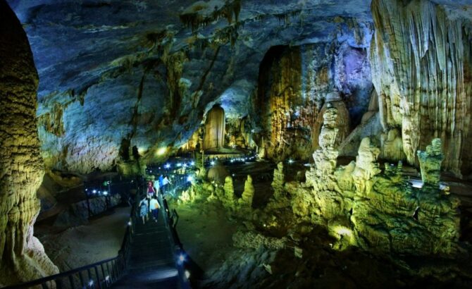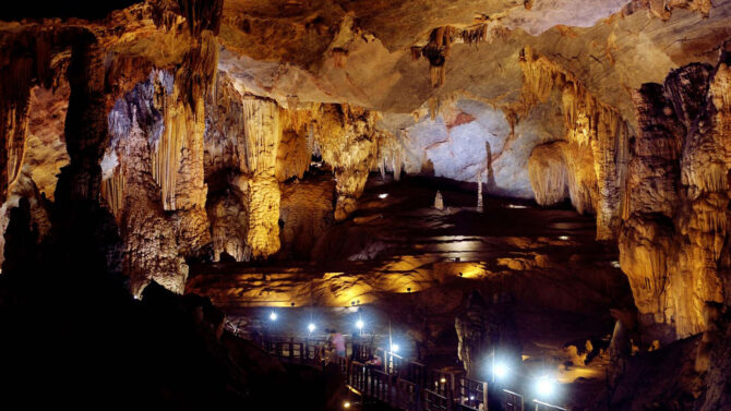 Райскую пещеру во Вьетнаме называют подземным Королевским дворцом за ее размер и красоту сталактитов. Она стала частью пещерного комплекса Национального парка провинции Кебанг. В отличие от соседних, Райская пещера сухая, внутри не протекает река, а земля ровная и мягкая. Туристы со всего мира посещают ее и безопасно гуляют, делая редкие фотографии.