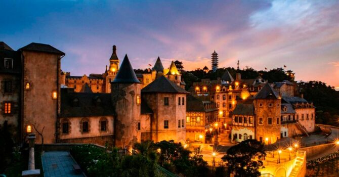 Уникальная достопримечательность, которая смотрится непривычно во Вьетнаме, но тем и притягивает гостей. Миниатюрная копия французской деревни на высоте 1500 м потрясает всех. Комплекс находится в 30 км от Дананга, и туда можно добраться только канатной дорогой. Ее занесли в Книгу рекордов Гиннеса за протяженность в 5 км. На горе удивительно все, даже резко меняющаяся погода в течение дня.