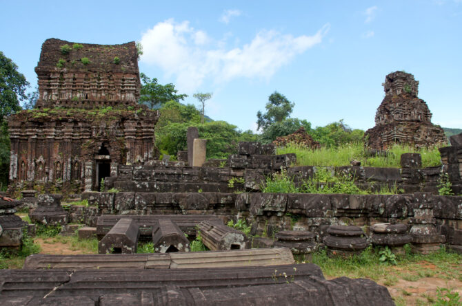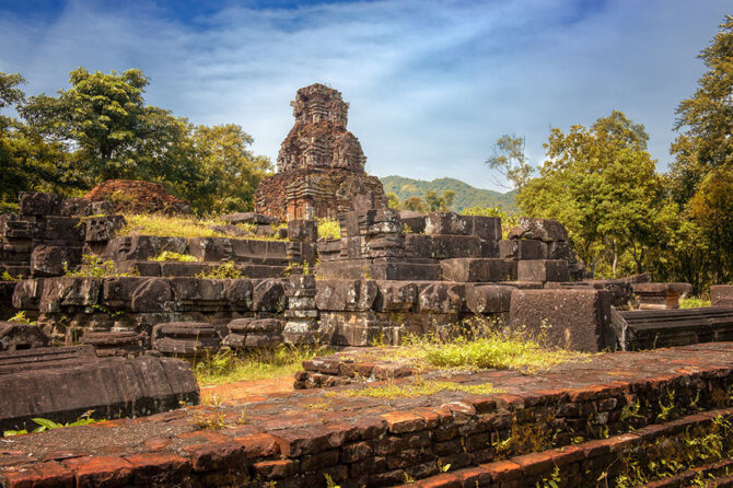 Руины Мишон — одни из вьетнамских архитектурных памятников и символов древних культур. Произнося слово “руины”, каждый из нас представил разбросанные хаотично камни разной величины и непонятного назначения. Но недалеко от Дананга находятся уникальные храмы, а не просто валуны, объединенные названием Руины Мишон. Это исторический след древней цивилизации чамов, существовавшей со 2 по 18 века н.э. Самый расцвет чамов пришелся на 7-10 век, когда народ формировал свой язык и развивал ремесла. В то время любое культурное творение было связано с религий, в особенности чувствовалось влияние Индии.