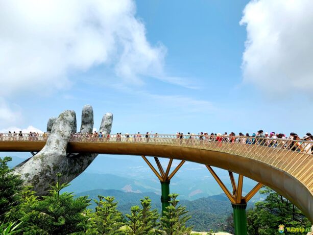 Золотой мост поднимается на 1400 м над уровнем моря, состоит из 8 пролетов общей длиной 150 м. Согласитесь, мощная и стильная конструкция, к тому же “парящая” над деревьями. Попробуйте подняться на мост, и тут же почувствуете себя в облаках. Это незабываемые эмоции и впечатления для туристов на всю жизнь. Сначала мост посещали только вьетнамцы, но слава о таком необычном объекте очень быстро разлетелась по загранице.