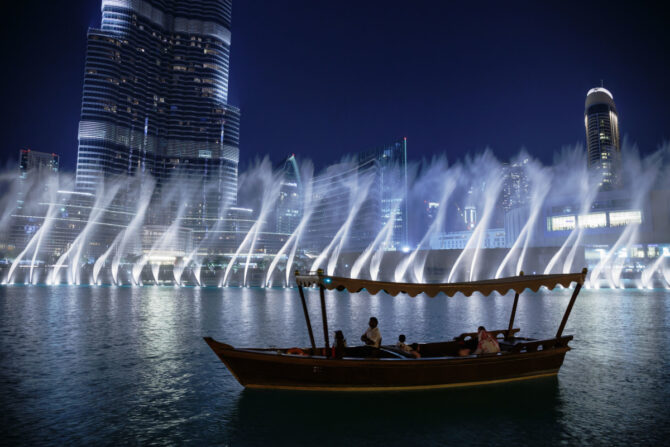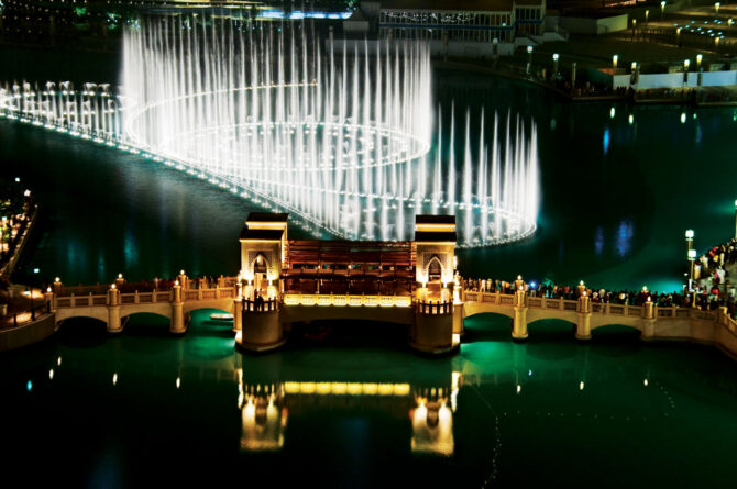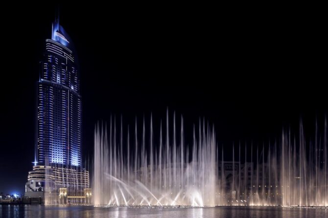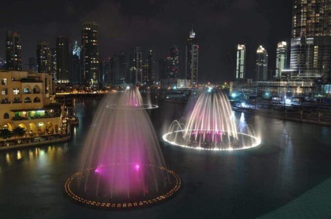 Этот удивительный «Танцующий» Фонтан был создан компанией из Калифорнии, которая также спроектировала знаменитый фонтан в Лас-Вегасе. Достопримечательность находится на большом участке земли возле известного небоскреба Бурдж-Халифа в Дубае. Для туристов проводится ежевечернее шоу, во время которого подсвеченные изнутри водные струи поднимаются на глазах у изумленной публики. В это время играет мелодия. Это могут быть как хиты, которые известны во всем мире, так и восточная или классическая музыка.