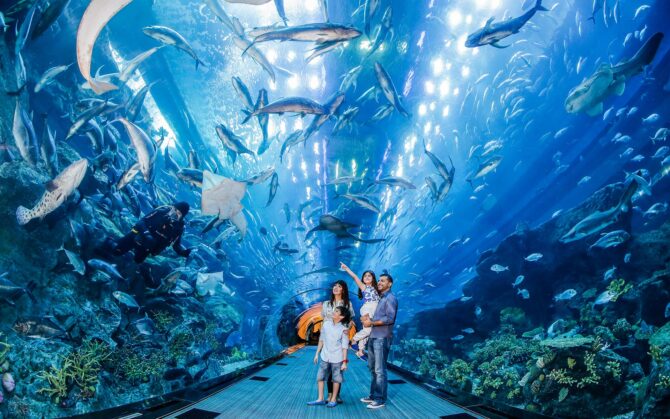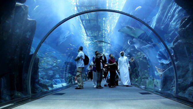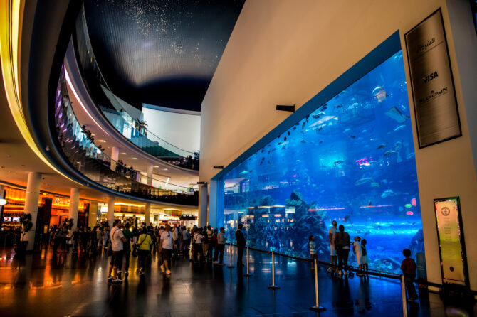 Этот аквариум в Дубае оснащен одной из самых больших панелей, созданных из специального небьющегося стекла. Среди искусственных кораллов здесь живут более 30 тысяч обитателей морского дна. Эта достопримечательность находится в огромном торговом центре «Дубай Молл», который так популярен среди приезжающих на отдых, а также местных жителей.