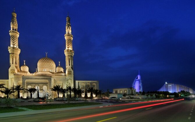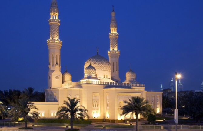 Достопримечательность включает в себя два минарета и огромный купол, возвышающийся над Дубаем. Особенно великолепно такая мечеть смотрится в ночное время, когда включается искусственная подсветка, которая подчеркивает изящные формы старинного строения.