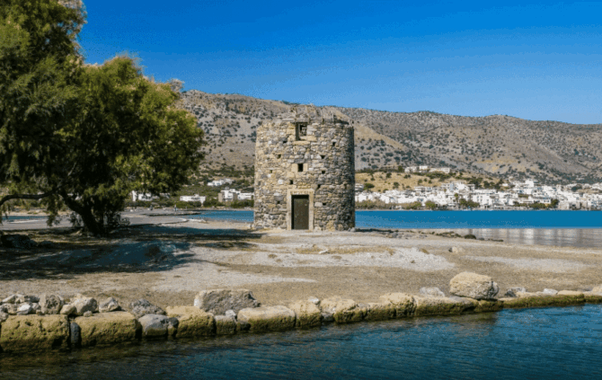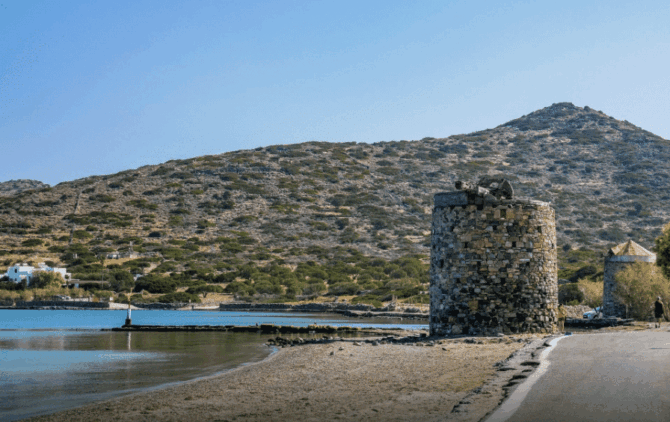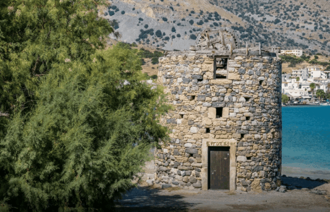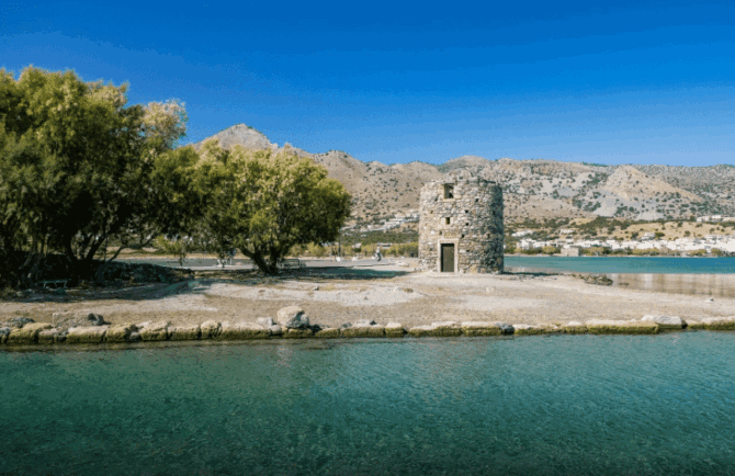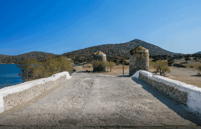 Следующие дни отдыха можно посвятить поездкам по интересным достопримечательностям окрестностей Элунды. Одна из них находится недалеко от Спиналонги. Это коллекция старых ветряных мельниц. Такие конструкции были характерны для Восточного Крита, несмотря на то, что остальная часть острова больше предпочитала водяные мельницы. Для критской провинции Мирабелло, где находится Элунда, особенно важны были именно такие мощные, выложенные из камня, ветряки. Здесь всегда испытывался недостаток пресной воды, зато морские ветра дули постоянно. Крепкие каменные мельницы обеспечивали мукой население префектуры. Их возводили на склонах холмов, которые постоянно продувались ветрами. Коллекция Vrouhas Windmills относится к памятникам архитектуры начала 19-го века. В нее входят три поворотных мельницы. Являясь круговыми конструкциями, они поворачивались по направлению ветра. Их спроектировал Антонис Капсоритакис. Конструкция кладки отличается сложностью. Диаметр сооружения составляет 5 метров при толщине стен 80 см. Мельницы отлично сохранились и сейчас являются украшением местности и фоном для любителей фотосессий. Возле памятника архитектуры есть парковка. Мельницы установлены возле канала, соединяющего лагуну Вулизмени с южным побережьем.