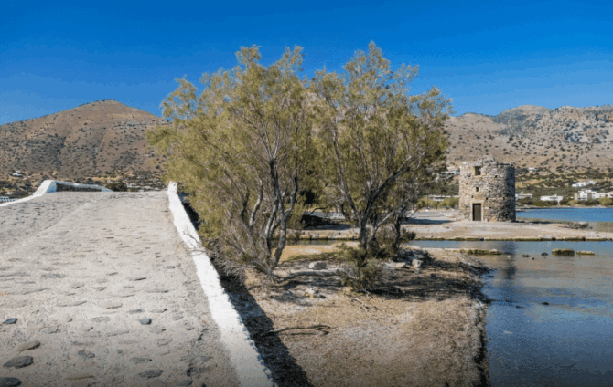 Это место еще называют «Островом живых мертвецов». Но у него была интересная история перед тем, как здесь открылся самый крупный на Крите лепрозорий. В древние времена он был частью побережья. Здесь находился древнегреческий город-порт Олус. В 201 гду до н.э. произошло сильное землетрясение. Большая часть города ушла под воду, а Спиналонга превратилась в полуостров, связанный с сушей перешейком. Когда венецианцы начали разрабатывать местные солончаки, было решено превратить Спиналонгу в неприступную крепость. Для начала территория была полностью отделена от побережья и превратилась в остров. Затем там построили крепость (1579 г.), которая служила надежным щитом от нападений с моря. Жители, одно время ушедшие с берега вглубь Крита, вернулись на родные земли. Им больше не угрожали пиратские набеги. Они смогли заниматься своими привычными делами – развивали ремесла и ловили рыбу. Венецианцы не сдавали крепость войскам Османской империи вплоть до 1715 года. В течение 45 лет они контролировали добычу соли в регионе и ее доставку в страны Европы. После сдачи крепости турки построили рядом с ней свое поселение, запретив критянам там селиться. Когда Греция стала независимым государством, на остров были собраны люди, больные проказой. Турки сами ушли из Спиналонги, опасаясь смертельной болезни. Лепрозорий просуществовал с 1903 по 1955 годы, пока не было изобретено лекарство от проказы. Колония больных лепрой оставалась на острове до 1957 года. Еду и воду им доставляли на лодках. Медики следили за рождаемостью. Если у больной женщины появлялся здоровый ребенок, то его забирали и отправляли в один из критских приютов. Когда проказа была полностью побеждена, Спиналонга вошла в список туристических объектов. Мрачная красота руин древней крепости не раз вдохновляла кинорежиссеров на создание очередного фильма ужасов или психологического триллера.