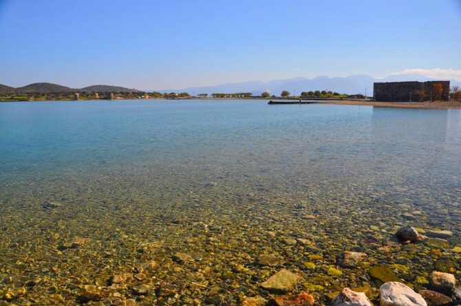 Во время отливов на поверхность воды выступают руины зданий, колонн, стен. Это остатки древнего города Олуса, который ушел под воду в результате землетрясения в 201 году до н.э. Все, что от него осталось сегодня покрыто водами залива Мирабелло. На острове Спиналонга осталось несколько разрушенных объектов, на севере от дамбы во время отлива видны фрагменты напольной мозаики. Об истории древнегреческого порта историки узнали из сохранившегося письма о соглашении Олуса взаимодействовать с другими полисами и городами Крита в торговле и укреплении дружеских отношений. Документ хранится в Лувре. Об этом городе минойской эпохи упоминал Гомер в «Илиаде» как о месте, где добывали камень, делали холодное оружие. Сегодня руины затонувшего города являются главной подводной достопримечательностью. Они привлекают дайверов со всего света. Снаряжение предоставляют многочисленные пункты проката, расположенные на пляжах. Сюда можно приехать и со своим аквалангом. Неудобство представляет сама дорога. В Элунду нет прямых автобусов и туристам приходится делать пересадку в Айос-Николаос. Поэтому рекомендуется воспользоваться услугами такси или отели помогут организовать трансфер и встречу в аэропорту.