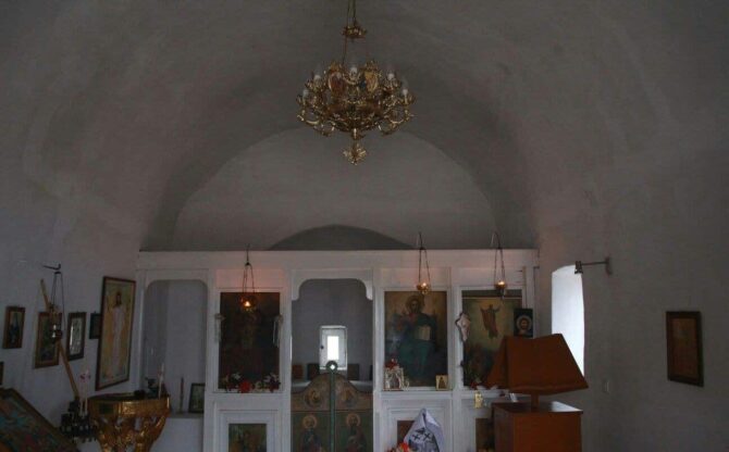 Этот храм находится на небольшом отдалении от деревни в уголке дикой природы. Прогулка к нему проходит по уединенным дорожкам. Здание построено на холме, с которого открываются прекрасные виды. Недалеко находится дикий пляж. Дно каменистое, поэтому потребуется специальная обувь. Сюда приходят любители спокойного немноголюдного отдыха. Здесь сама атмосфера пропитана тишиной и немногословностью. Дворик возле храма небольшой. В здании оборудованы два входа, небольшое окошко, звонница отсутствует.