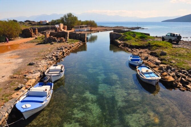Чтобы узнать Крит изнутри, стоит отправиться в рыбацкую деревню Мохлос, а заодно посетить одноименный остров, расположенный тут же. Оба объекта находятся на восточной побережье залива Мирабелло. В симпатичную деревеньку туристы приезжают, чтобы посетить местные таверны, в которых готовят традиционные рыбные блюда. На остров отправляются искатели приключений и любители исторических тайн. До него можно добраться вплавь, но лучше нанять у местных лодку. Около 4 тысяч лет назад остров был соединен с побережьем нешироким перешейком. Земля была защищена от нападения морем с трех сторон. В минойский период здесь находилось стратегически важное поселение, руины которого исследуются археологами до сих пор. Раскопки начались в 1908 году американцем Ричардом Сигером. Он первым обнаружил несколько десятков погребений, избежавших разграблений и вандализма. Среди захоронений были могилы богатых людей и ремесленников. Археолог нашел массу исторически важных предметов и драгоценных украшений. Затем возник вопрос, почему погибло поселение и кем оно было разрушено. Дело в том, что дома были построены на вулканическом пепле, значит уже после чудовищного землетрясения, уничтожившего Олус и другие города побережья. Исследования древнего поселения проводятся до сих пор силами сотрудников и студентов Университета Северной Каролины, а также многочисленными волонтерами, любящими загадки истории.