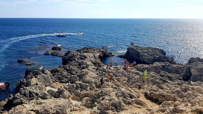 Активные туристы посещают Тарханкут в летние месяцы, когда устанавливается наиболее благоприятная погода для подводного плавания и загара на диких пляжах.