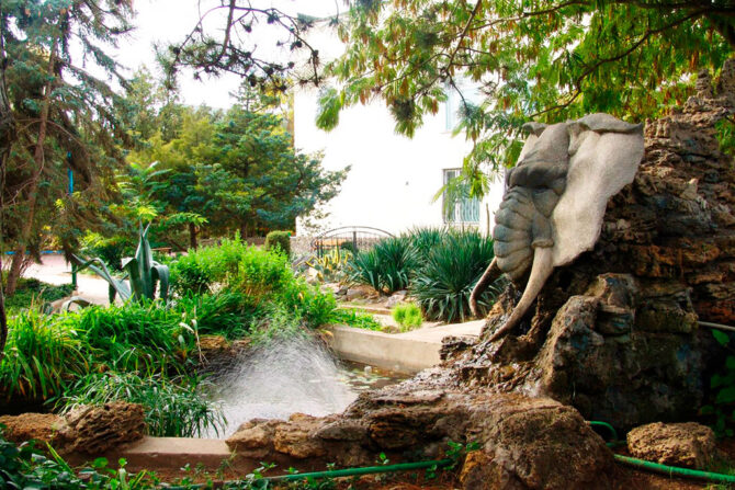 - невысокий фонтан у главного входа;