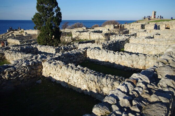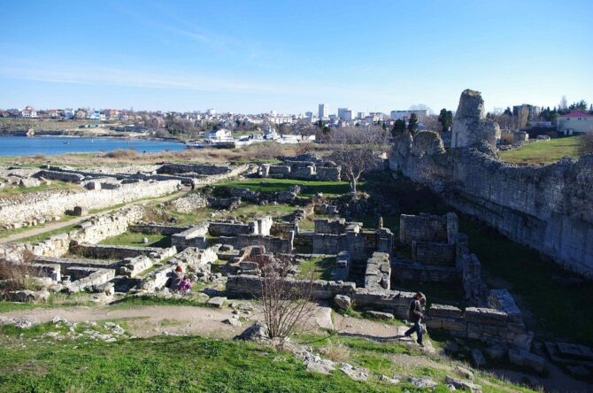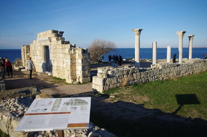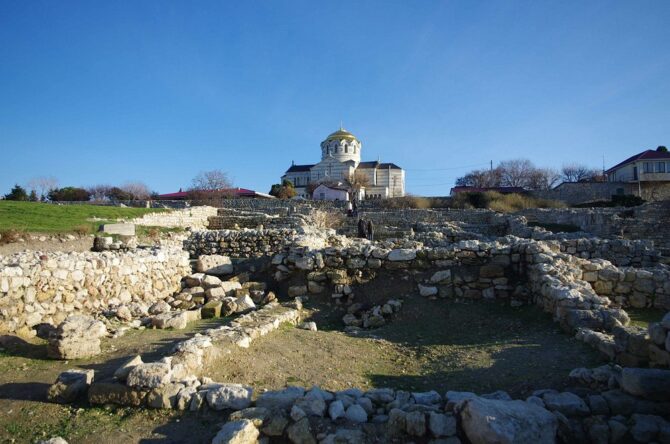 Знакомство с историческими объектами полуострова не обходится без посещения одного из наиболее известных крымских археологических комплексов. В 144 км к югу от Евпатории (по автомобильным дорогам) находится Херсонес Таврический. Греческий полис – город-государство – был основан в 424–421 гг. до н. э.