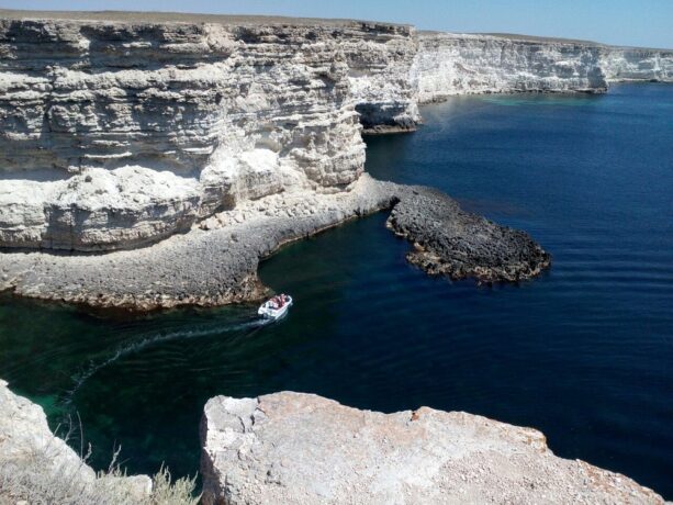 Природный объект, который непременно стоит посетить любознательным туристам, находится в 103 км к северо-западу от Евпатории. Мыс Тарханкут, расположенный на одноименном полуострове, относящемся к заповедной зоне, – удивляет путешественников живописными ландшафтами и необычными творениями природы: