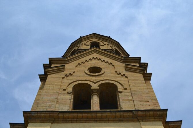 - квадратная звонница, где установлено 14 колоколов, изготовленных воронежскими мастерами;