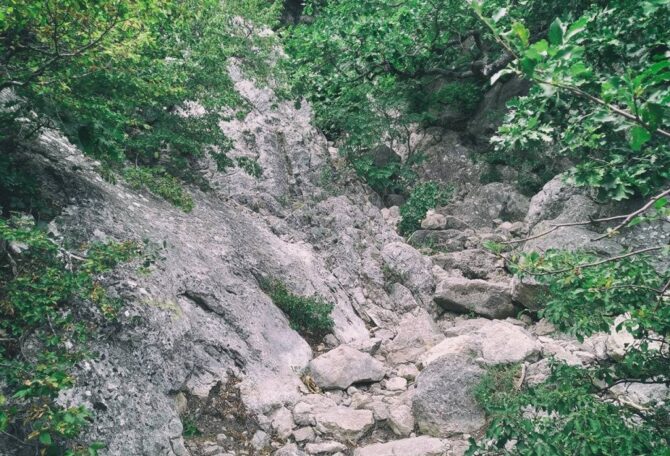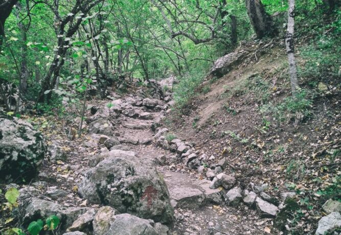 Поднявшись в горы, мало кто из туристов хочет оттуда уходить. Продолжить прогулку можно, посетив перевал Шайтан-Мердвен. В переводе с крымско-татарского это означает «чертову лестницу». Дорога уводит путешественников вверх на высоту 518 метров над уровнем моря. Остается только догадываться, кто и когда ее проложил. Но то, что она существует с древних времен, уже не догадка, а научно обоснованный факт. археологами были найдены здесь кремниевые микролиты – орудия труда, которыми пользовались люди позднего палеолита. На самых трудных участках пути сохранились старинные подпорные крепиды и остатки стен-ограждений.