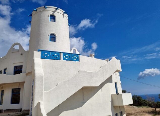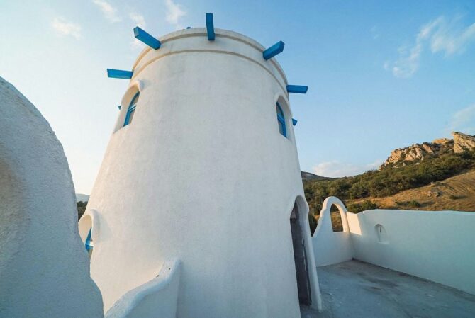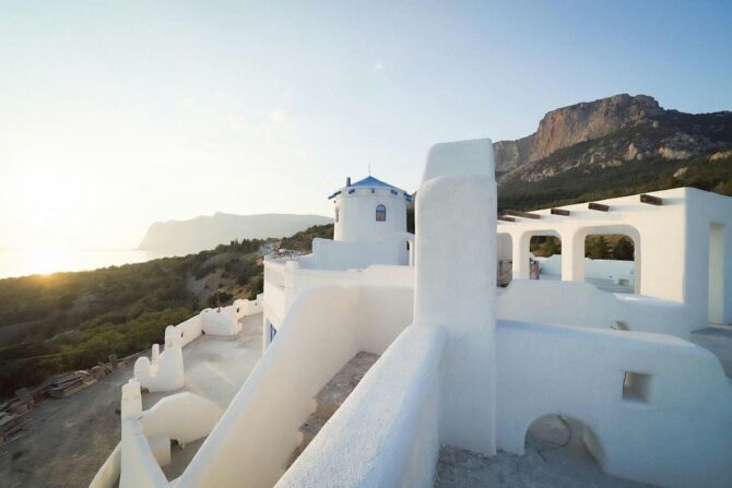 Под конец увлекательного путешествия по окрестностям Фороса можно посетить Крымский Санторини. Он находится по пути к бухте Ласпи. Проехать мимо невозможно. В глаза сразу бросается белоснежное здание с голубой крышей, построенное в стиле греческих крепостей. Такими бывают рестораны и придорожные отели на греческом острове Санторини. Когда здание будет достроено, скорее всего, в нем будет кафе, ресторан или мотель. Сегодня сюда можно пройти просто так, чтобы полюбоваться прекрасными видами с обзорных площадок. Любителя фотосессий нравится делать здесь уникальные фоточки, чтобы затем поделиться ими в своих соцсетях. Для справки – подняться на крышу и сфотографироваться можно по предварительной договоренности. Аренда площадки ведется по предварительной записи.