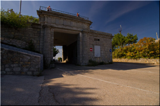 Еще один перевал, соединяющий Байдарскую долину с Южным берегом Крыма, находится между горами Челеби и Чху-Баир. Его также заменила старая шоссейная трасса «Ялта-Симферополь». В память об окончании ее строительства ялтинский архитектор Карл Иванович Эшлиман установил арку «Байдарские ворота». Они символизировали парадный въезд, образованный портиками и колоннами. Традиция возведения подобных пропилеи была позаимствована автором проекта у древних греков.