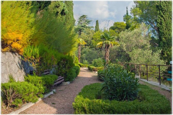 В парке растет более 200 видов редких растений. Среди них – магнолии, секвойи, кипарисы, пальмы, платаны, несколько разновидностей сосен. Экспозиционная зона благоустроена. По ней проложены пешеходные аллеи, построены спортивные, лечебно-оздоровительные и развлекательные объекты. Практически все они относятся к инфраструктуре санатория «Форос».