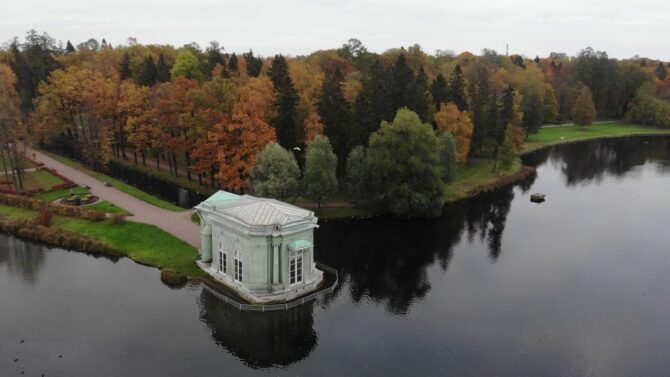 У Екатерины II, за всю историю правления, существовало несколько фаворитов, сменявших друг друга. В 1760 году им был граф Орлов. Великая государыня выразила собственное расположение презентом: земельный участок около Петербургом на прибрежье Серебряного озера. Талантливый зодчий того периода Антонио Ринальди и основал дворцово-парковый комплекс. На строительство Большого дворца ушло 16 лет. Но его история на этом не закончилась.