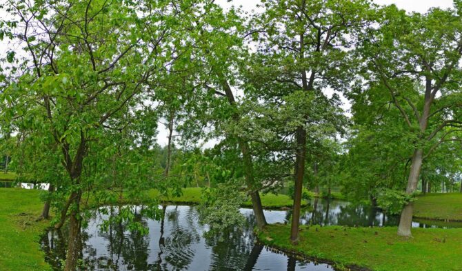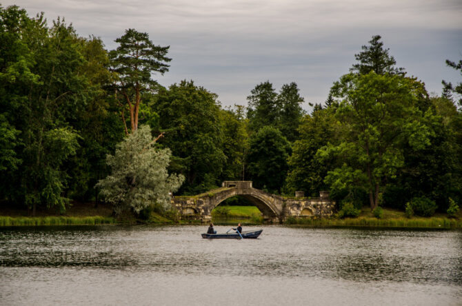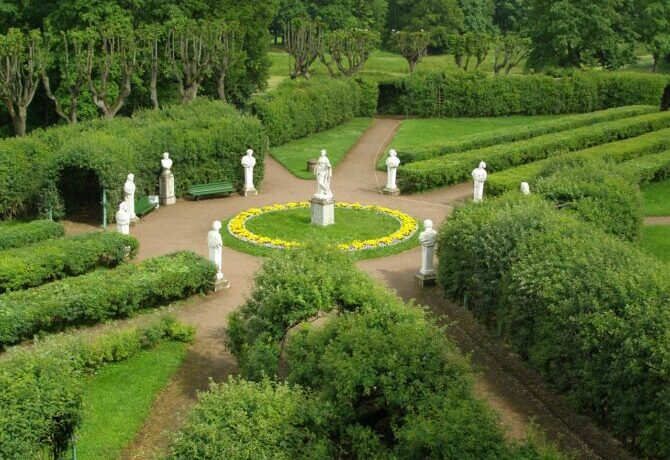 Оформление парка с разделением на вертикальные поляны началось в 1796 году по проекту ирландца Джеймса Хакета, садовода английской ландшафтной школы. Позже, помимо берез, елей и осин, в парке было посажено более 30 000 лип. Вскоре был огорожен участок для оленей, лосей и ланей, где они могли укрыться от хищников, вторгшихся в парк. Также в парке были устроены пруды для поилки и созданы запасы сена и овса, чтобы животные не голодали.