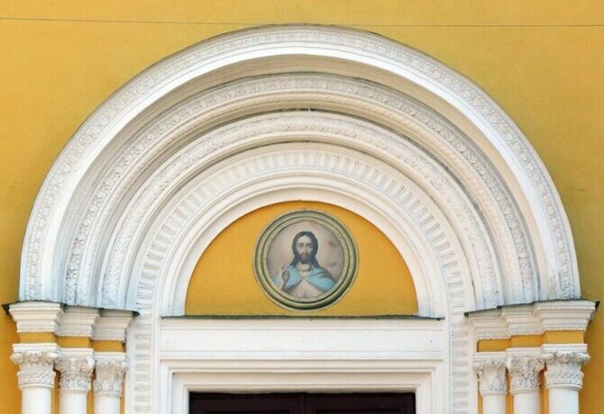 Когда началась бомбардировка, конструкция собора сильно пострадала, а купол был пробит снарядом.