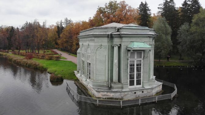 На протяжении двух столетий изящная конструкция павильона «Птичник» поражала посетителей усадьбы и созданного впоследствии музея. Живописный павильон из светлого камня был настоящей жемчужиной романтических пейзажей извилистой реки Колпанки. Теперь уникальное сооружение предстает в разрушенном состоянии, и каждый год павильон становится площадкой для реконструкции исторических сражений.
