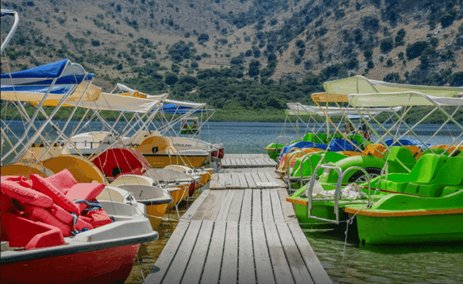 Для отдыхающих открыты двери трех прокатных контор, где можно арендовать лодку или катамаран. Стоимость услуги в [y] г. – от 7 до 15 евро. Шезлонги выдаются бесплатно. Туристы с удовольствием знакомятся со вкусом традиционных критских блюд в тавернах и ресторанах, расположенных у озера: