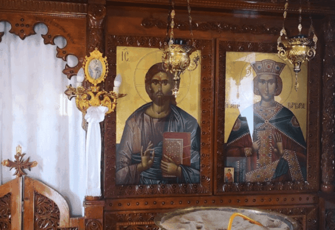 В небольшом зале храма, где могут одновременно разместиться не более 10 человек, сооружен иконостас. Образ Святой Варвары сразу бросается в глаза всем входящим внутрь помещения. На крыше церкви, рядом с которой растут кустарники, ветвистая пальма, высокая сосна и другие деревья, можно увидеть колокол и небольшой крест. Сведений об истории создания храма не сохранилось.
