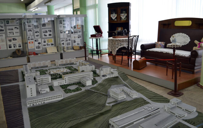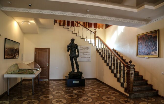 Мимо здания кирпичного цвета невозможно пройти мимо. Оно привлекает своей индустриальной архитектурой, а также уличной выставкой шахтерской техники. Внутри расположено несколько экспозиционных залов, в которых можно узнать историю Лебединского и Стойленского ГОКа, становления комбината «КМАруда», открытий и исследований курской магнитной аномалии. В зале геологии находится коллекция минералов, найденных на территории региона.