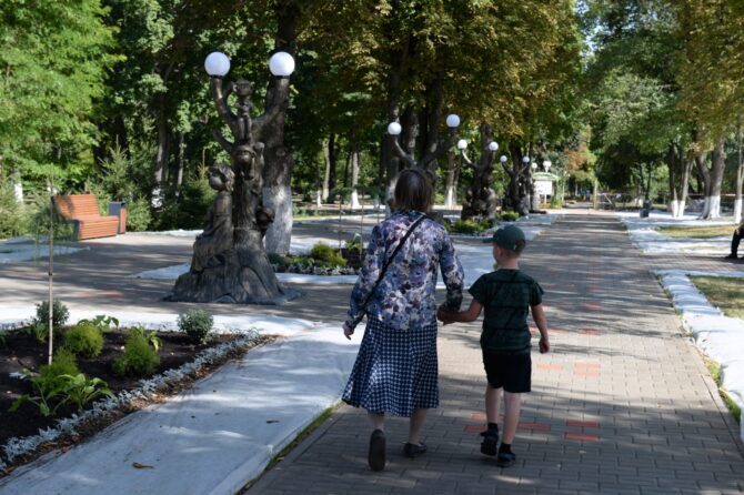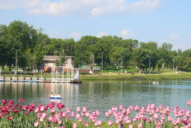 Теперь немного о благоустройстве старинного сквера Коробковых. Сегодня на его территории создан дендропарк с аккуратными дорожками, роскошными цветочными клумбами, зеркальным прудом с плавающим фонтаном. Территория украшена объемными растительными фигурами. На пруду организован причал, от которого отходят прогулочные лодочки и катамараны. Прокатиться по водной глади также можно на точной копии ботика Петра I «Святитель Николай». Детям будет интересно посетить Поляну сказок. Она находится на входе в парк. Это зона с объемными скульптурами в образах семейства слонов, бредущих вдоль берега, медведей, сидящих на деревьях, павлина с шикарным хвостом, выполненным из цветов. Дендропарк занимает 1,5 га, на которых высажено более 50 видов разнообразных деревьев и кустарников.