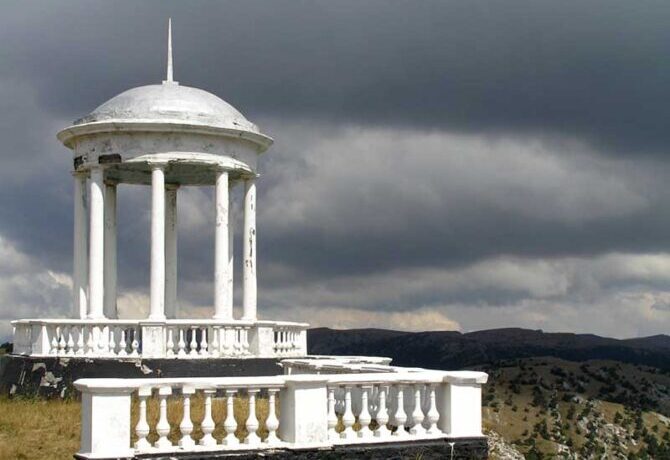 На вершине Шаган Кая – Соколиной горы (высота – 1423 м), – находящейся в 6 км (по прямой) к северо-западу от Гурзуфа, активные путешественники обнаружат рукотворный объект, интересный для любителей пеших прогулок и красивых видов. В 1956 г. здесь была сооружена Беседка ветров, ослепляющая в солнечную погоду белым цветом. В 1998 г. закончилась реконструкция сооружения.