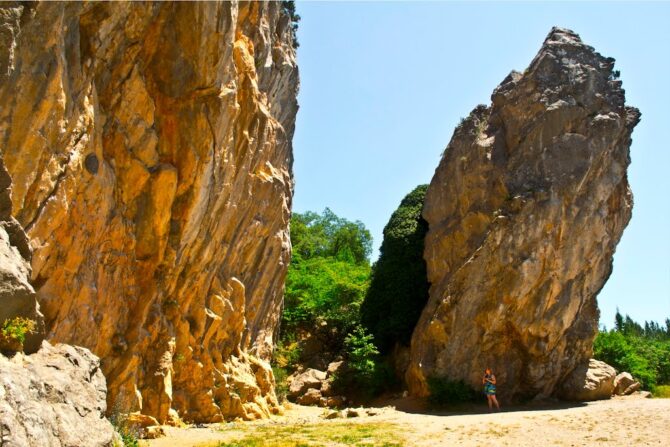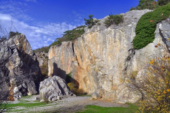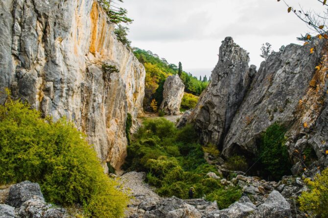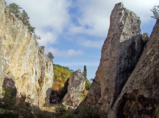 Расселина образовалась миллионы лет назад. Тектонические процессы приводили к постепенному откалыванию известняковых массивов от основного горного хребта. Скалы расселины удивляют разнообразием цветовых оттенков: