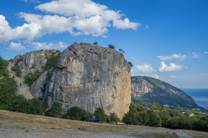 Вокруг скалы простираются виноградники. Рядом с каменным монолитом расположено небольшое озеро. На вершине скалы можно разглядеть плохо сохранившиеся фрагменты средневековой цитадели. Путь к монолиту из Гурзуфа проходит через несколько участков: