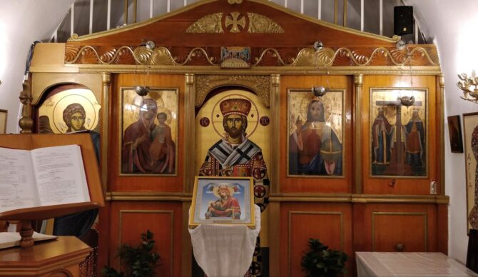 Небольшой внутренний зал церкви, вмещающий до 50 человек, украшает иконостас. Здесь не принято зажигать свечи. Над входом в храм можно увидеть икону с изображением Елены и Константина. Церковную крышу украшает едва заметный крест. По выходным дням в храме проводятся святые мессы. Вход в церковь свободный. Верующие посещают сакральное место в течение всего года. По субботам и воскресеньям в храме также можно стать свидетелями крещения детей или венчания.