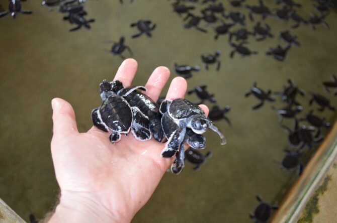 Почему взрослым черепахам помогают сохранить потомство, разве они не делают этого в природе сами? Яйца они откладывают в песок, они по размеру чуть меньше куриных, с тонкой скорлупой. Кроме всего прочего, это деликатес, который очень ценится в ресторанах, и просто крадется браконьерами. Если этого, к счастью, не происходит, что уже вылупившиеся черепашки могут пострадать от чаек и рыб-хищников.