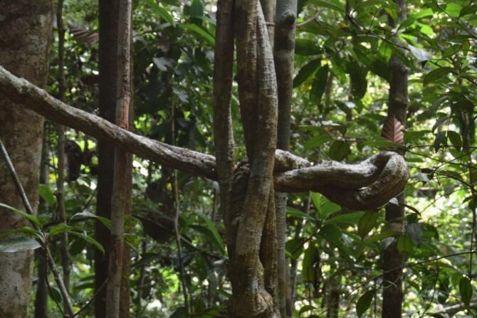 - Самые высокие деревья — основа всей системы. В высоту они сравнимы с 10-тиэтажным домом, и только на этом уровне начинается крона. Представьте себе мрак, царящий под такой “крышей.