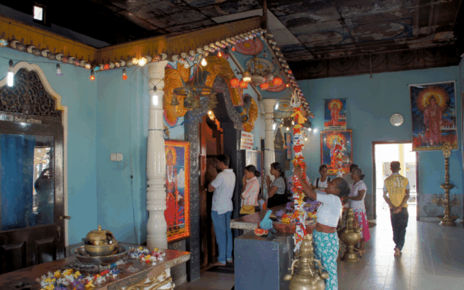 Если будете путешествовать по Хиккадуве на городском автобусе, то обязательно увидите, как водитель останавливается возле храма Синигама и делает подношение — всего 1 монетку в ящик. Раз в месяц в храме проходит церемония в честь божества и считают монеты, нередко их общий вес превышает 50 кг.