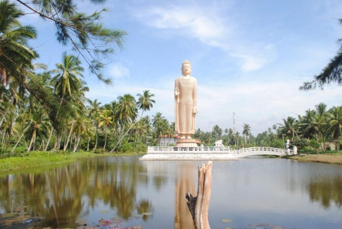 Все что произошло тогда, стало самым страшным событием современности, и Шри-Ланка пострадала одной из первых. Только погибшими были признаны более 50 тыс. человек. Спустя время, в память об этом страшном событии поставили памятник. Это статуя Будды высотой 15 м. Он стоит лицом к океану и, подняв руку, просит океан успокоиться.