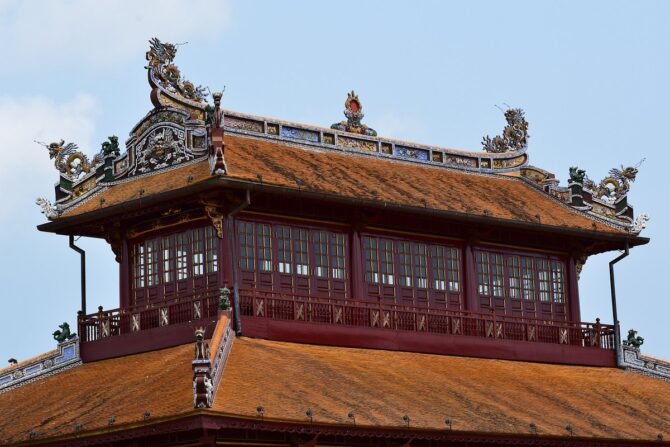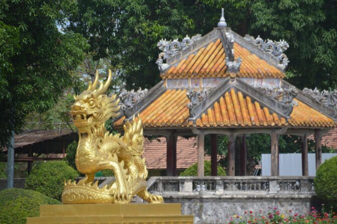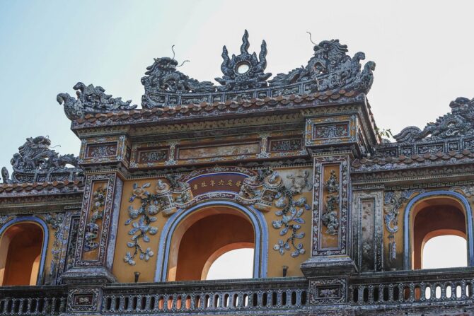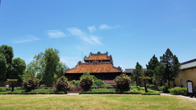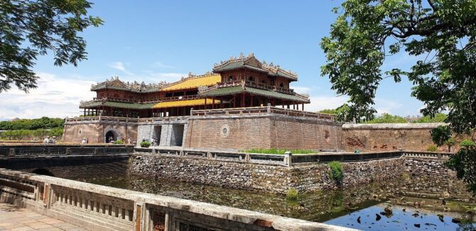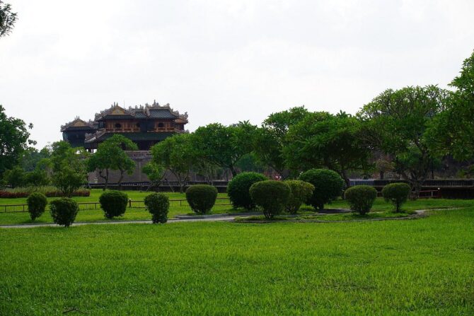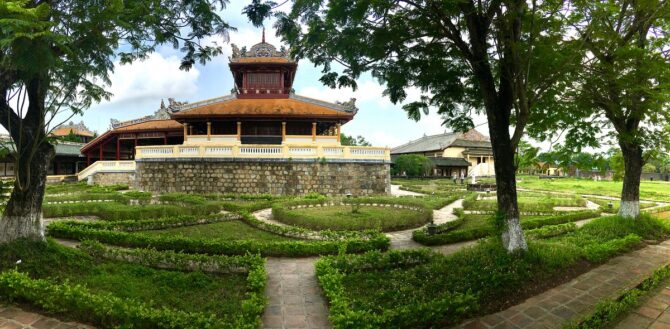 В обзоре предлагается удобный маршрут для тех, кто желает осмотреть Хюэ самостоятельно и поближе познакомиться с его достопримечательностями, культурой и праздниками. Экскурсия начинается в центре исторического района Хюэ. Заканчивал проект последний император Вьетнама Бао Дао. Комплексный билет для посещения стоит 150 тысяч донгов. Музеи Императорского города открыты с 6:30 до 17:00.