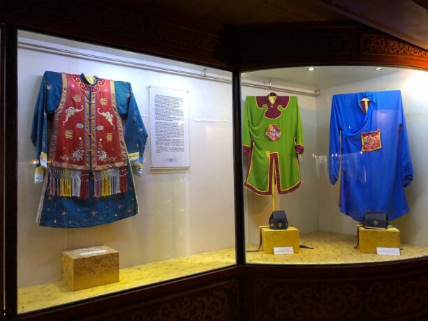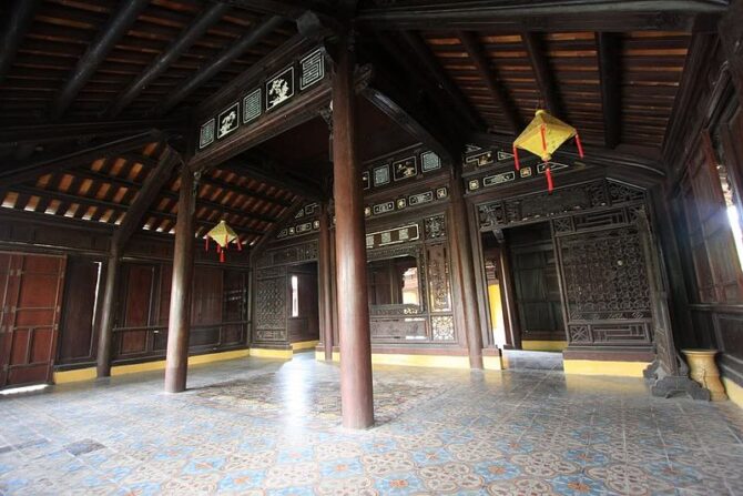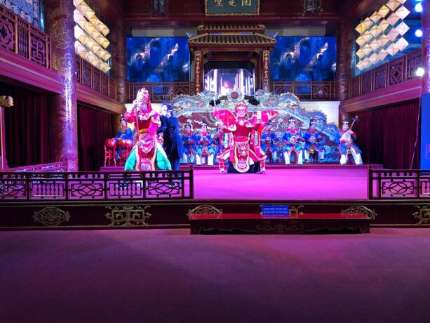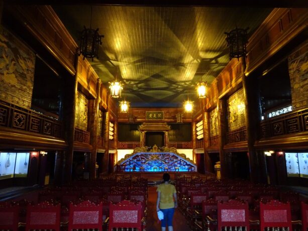 В 1826 году по велению Минь Манга было заложено здание королевского театра. Актеры в нем давали представления только для королевской семьи и самых приближенных придворных. Двухэтажное здание высотой 12 метров представляет интерес архитектурной задумкой и интерьерами. Например, чтобы визуально расширить помещение, художники расписали потолок под нежно-голубое небо с облаками. Сцена имеет только задник и хорошо просматривается с трех сторон. Он застлана циновками. Напротив установлен трон для монарха и несколько кресел для его почетных гостей. Для членов королевской семьи предназначались места в ложах, расположенных за партером.