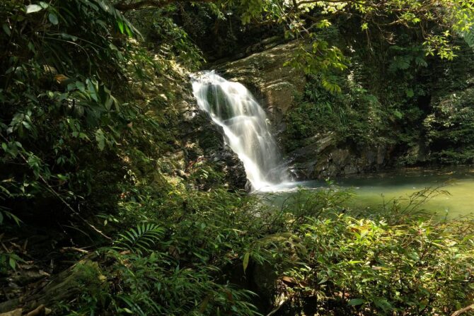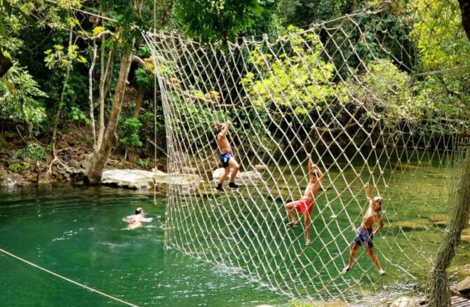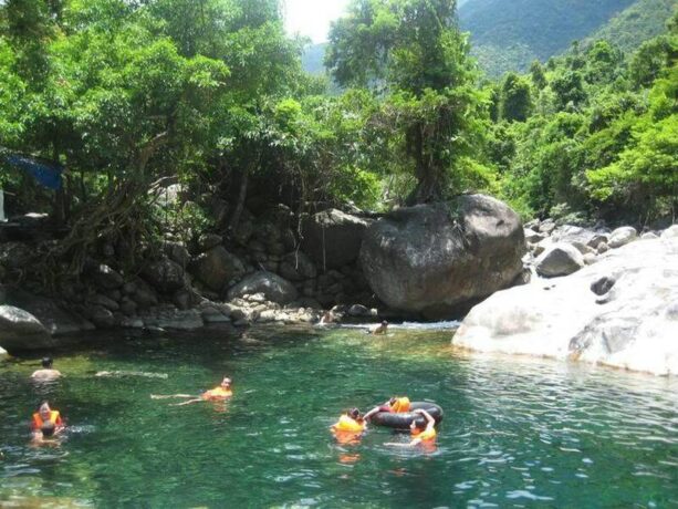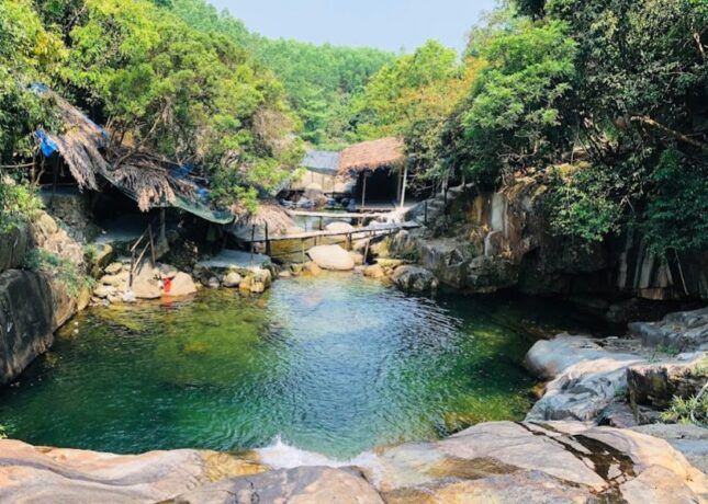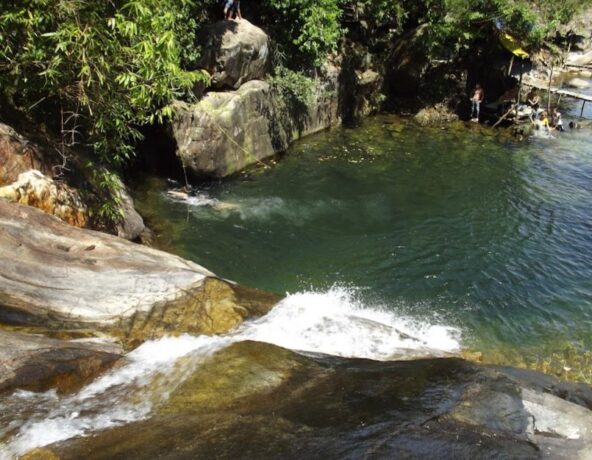 Красивый водопад Бо Ге находится в зоне экотуризма. Путь к нему неблизкий, поэтому стоит воспользоваться арендованным транспортом или такси. Вход платный – 11 тысяч донгов с человека + 5 тысяч за парковку. Без спасательного жилета в воду не пустят, а это еще 10 тысяч донгов. Но туристы сюда едут, чтобы отдохнуть на природе и полюбоваться водопадом с чистейшей и прозрачной водой. Для безопасного купания предусмотрен мелководный бассейн. В нем обычно купаются дети. Глубина по колено, зато массу эмоций вызывает быстрый поток. Стоя под струями воды можно принять природный душ. Он освежает и охлаждает тело в знойный день. Спасательный жилет нужен тем, кто уходит на другой склон, чтобы прыгать в воду с высоты 5 метров. Территория благоустроена, как и полагается туристическому объекту на природе – деревянные мостки с поручными, небольшая смотровая площадка, кемпинг, ресторан здоровой пищи. Здесь можно арендовать шатер и заказать еду для компании. Сюда приезжают на выходные дни с семьями, друзьями или в составе трекинг-групп.