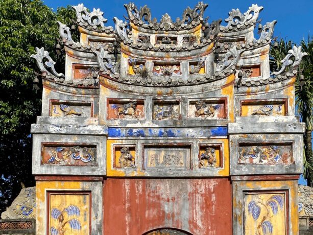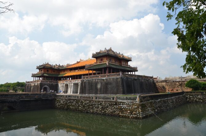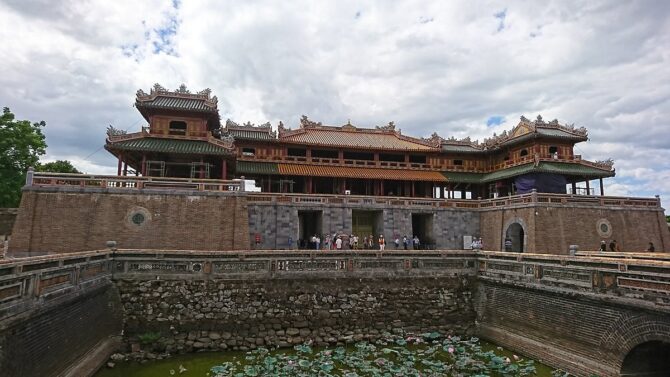 Ворота Нго Мон или Ворота Меридиана тесно связаны с Императорской цитаделью Хюэ, поэтому как экспаты, так и местные вьетнамцы придерживаются мнения, что исследование древней цитадели лучше всего начать именно с них. Вход через эти ворота позволит глубже понять культуру Хюэ и вьетнамскую историю. Ворота Меридиана считаются наиболее представительными из всех 7-ми парадных входов в Запретный город. Они находятся с южной стороны и были построены королем Мин Мангом – вторым представителем династии Нгуен. В 1833 году он проводил реконструкцию некоторых объектов и заодно решил возвести центральные и самые красивые ворота. Он лично выбрал место, приказал снести сооружения, которые находились на площадке. Он выбрал не случайное место. Раньше здесь находились обзорная площадь с дворцом Кан Нгуен. Постамент остался. С него открываются прекрасные виды. Ворота состоят из трех частей. Центральная предназначалась для входа короля, две другие двери – для его придворных. Во время американо-вьетнамской войны ворота были повреждены. Это случилось в 1968 году, но власти тут же приступили к восстановительным работам, поэтому в 1970 году Южный парадный вход вновь принимал гостей.