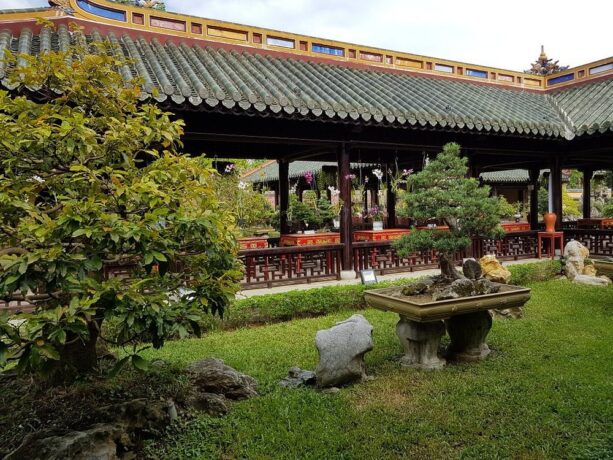 Если взять за основу современные отели, то дворец Киен Чунг можно вполне отнести к системе гостеприимства эпохи царствования династии Нгуен. В нем огромное количество спален, ванных комнат с санузлами, гостиных холлов с бильярдными комнатами, столовых с ломберными столиками. Дворец служил резиденцией для двух последних императоров Вьетнама. В 1947 году он был полностью разрушен и в течение полувека оставался в руинах. За его реконструкцию взялись только в 2019 году. Работы велись по оставшимся в архивах чертежам. На сегодняшний день работы практически закончены и туристы могут осмотреть этот необыкновенный для Азии дворец. В его восстановление было инвестировано 123 миллиона донгов.