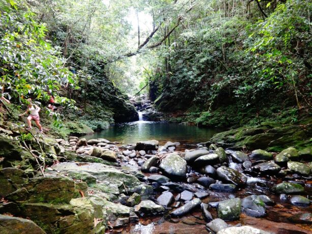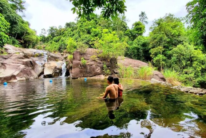Совсем недалеко от Скользящего водопада находится Нхи Хо. В отличие от предыдущего, возле него не бывает большого скопления народа, но и приходить сюда с маленькими детьми будет не совсем разумно. С малышами лучше всего остаться в более безопасной зоне, а сюда можно отправиться за уединением и спокойным отдыхом на природе. Здесь нет облагороженной территории, не установлены беседки и, тем более, не подается горячая еда. Отсутствие закусочных и кафе определяет необходимый набор продуктов в дорогу – вода, бутерброды, фрукты. Чтобы позагорать на камнях, потребуется взять с собой полотенце или легкую цинку. При купании в бассейне у подножия водопада следует быть острожным, ступая по скользким камням.