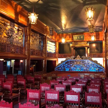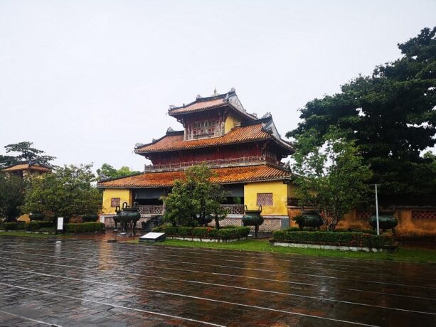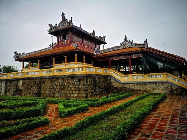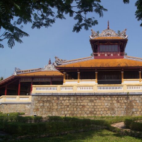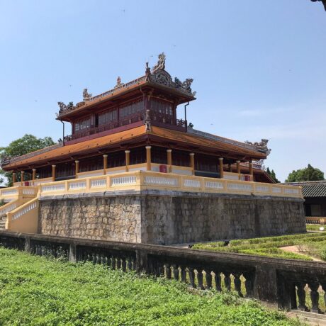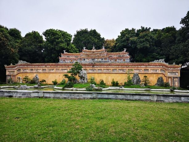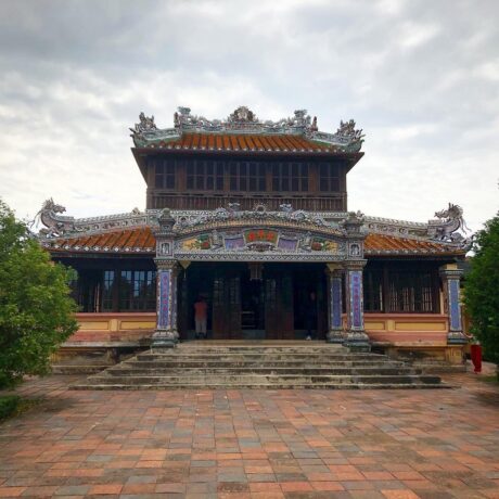 Потрясающий архитектурный памятник, который ни в коем случае нельзя пропустить. Дворец выполнял функции ритуального сооружения. Государь представлен в нем, как ставленник Небес. В концепции заложены восточные философские знания о сотворении мира и императоре, как хранителе порядка на вверенной ему земле. Проект здания несет в себе взаимосвязь элементов, имеющих первостепенное значение. Основой архитектурной композиции стали традиционные китайские понятия «Инь» и «Ян». Они воплощены в виде внутреннего круга и внешнего квадрата. Логика, руководствуясь чувствами, должна помогать императору принимать важные политические решения, учитывая интересы своего народа. Общая конструкция выглядит до такой степени гармонично, что по ее подобию в Хюэ начали строить отели. Один из них так и называется Thanh Minh Hotel, причем находится он недалеко от основного комплекса архитектурных памятников бывшей столицы Вьетнама.