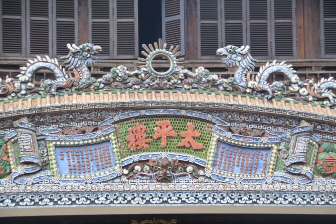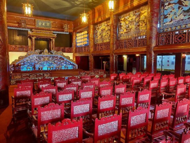 К архитектурным достопримечательностям относится Китайский зал, названный в туристических буклетах, как Halls of the Mandarins. Это небольшой дворец, в котором сегодня располагается павильон для туристов. Здесь можно купить сувениры или сфотографироваться в национальных костюмах, посмотреть на интерьер и обстановку. Любителей изобразительного искусства порадует красочная роспись на стенах, наличие фресок и скульптур, знакомящих с культурой мандаринов. Посещение китайского зала входит в единый билет. Он состоит из золотой и красной комнаты с выставочными музейными экспозициями, а также сувенирной лавки. Фотографироваться можно на фоне любых экспонатов. Зал находится сразу за выходом из Дворца Тай Хоа.