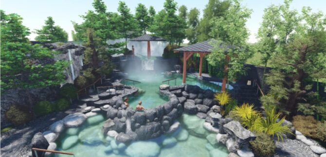 Здесь построены отели, виллы высокого уровня комфортности, погружная ванна, кабинеты для спа-процедур, рестораны, развлекательные центры. Для купания используется инновационная технология onsen: японцы используют горячую минеральную воду с большим количеством минералов и высоким содержанием серы. Ванна отличается эффектом восстановления здоровья в период реабилитации, укрепления иммунной системы организма, омолаживания, регенерации кожи. Заказать номер и познакомиться с пакетами предложений можно на официальном сайте компании.
