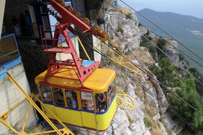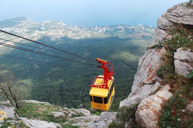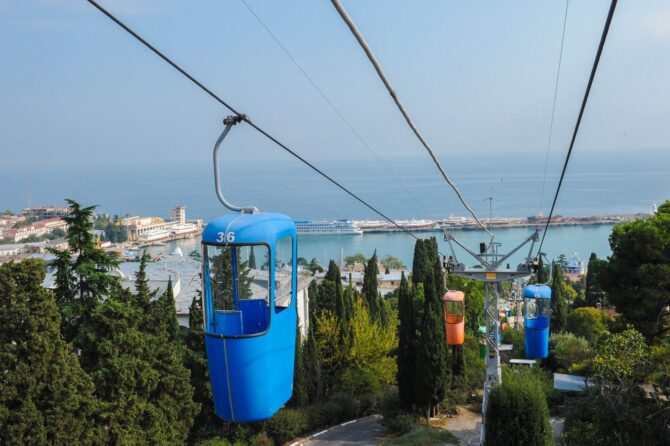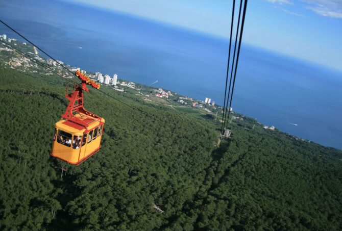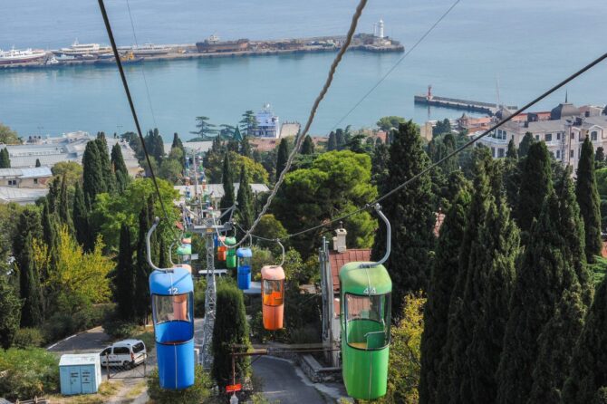 Всегда находится немало желающих увидеть Ялту с необычного ракурса. В середине городской набережной, чуть южнее гостиницы «Таврида», расположена нижняя станция, откуда начинается канатная дорога, характеризующаяся пятью параметрами: