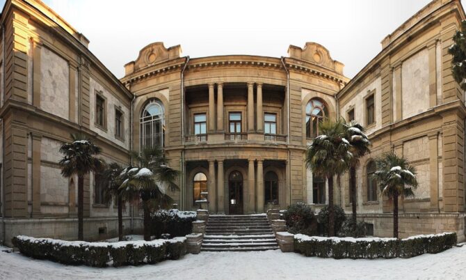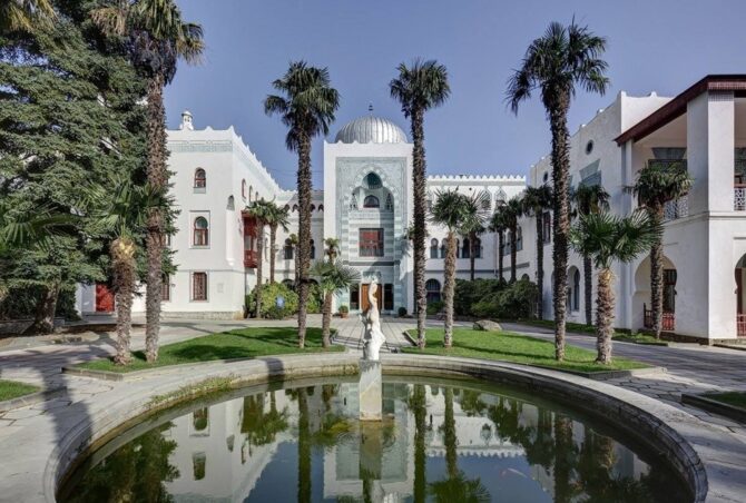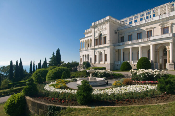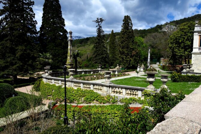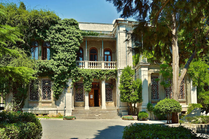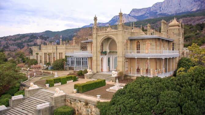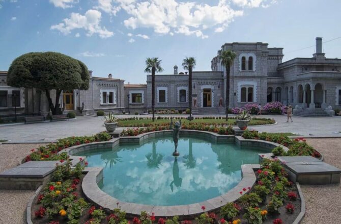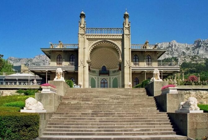 Сооружение окружает сад, где выставлены скульптуры, выполненные венецианскими мастерами. В залах дворца представлены коллекции западноевропейской живописи, собранные Ф. Юсуповым. С 1920 г. в здании находились помещения дома отдыха и партийной дачи. Статус дворца менялся дважды: в 1991 г. сооружение стало собственностью управления делами украинского президента, с 2014 г. – российского главы государства.